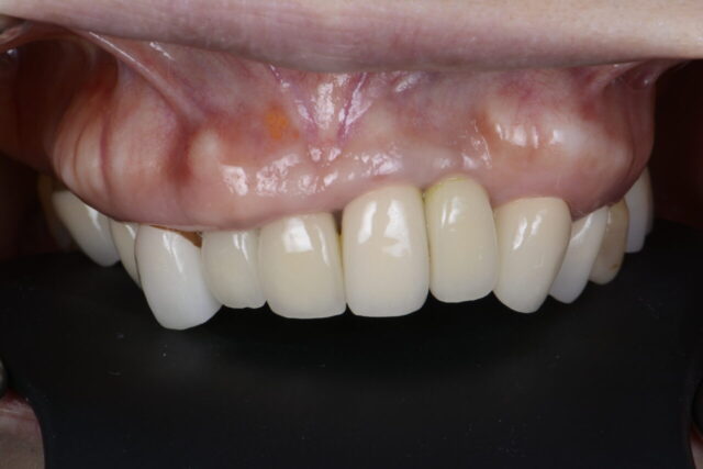 元々食い縛りが酷いため歯がダメにならないように夜間マウスピースにより歯軋り食い縛りによる補綴物の破壊を予防。 -