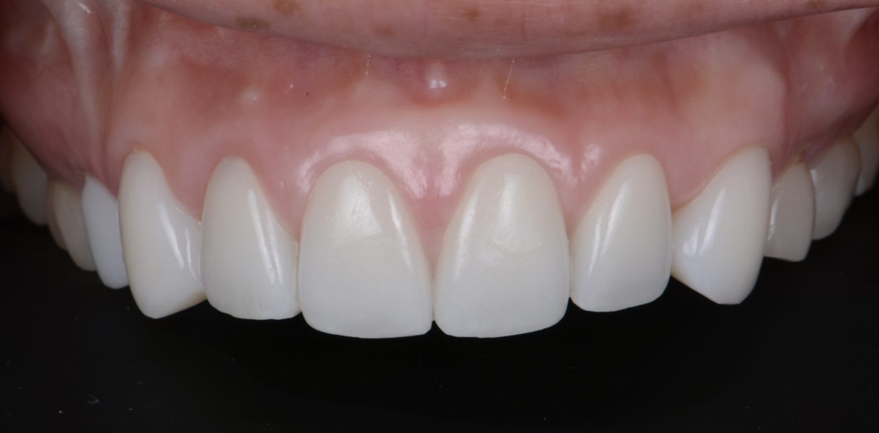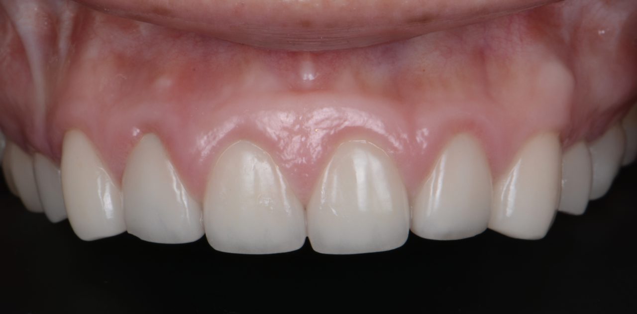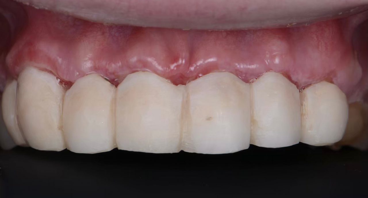 - 写真の患者様は骨隆起に乗っかってしまうタイプです。骨隆起除去+審美クラウンレングスニング+ラミネートベニヤ治療を行いました。