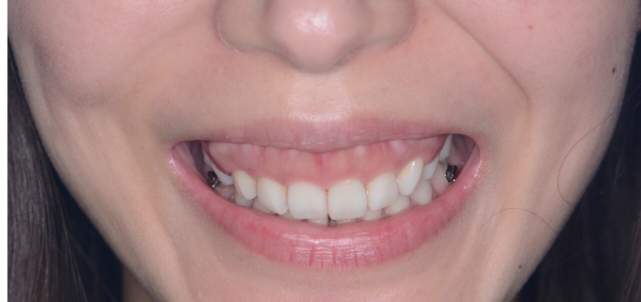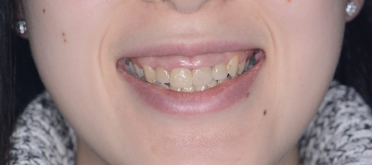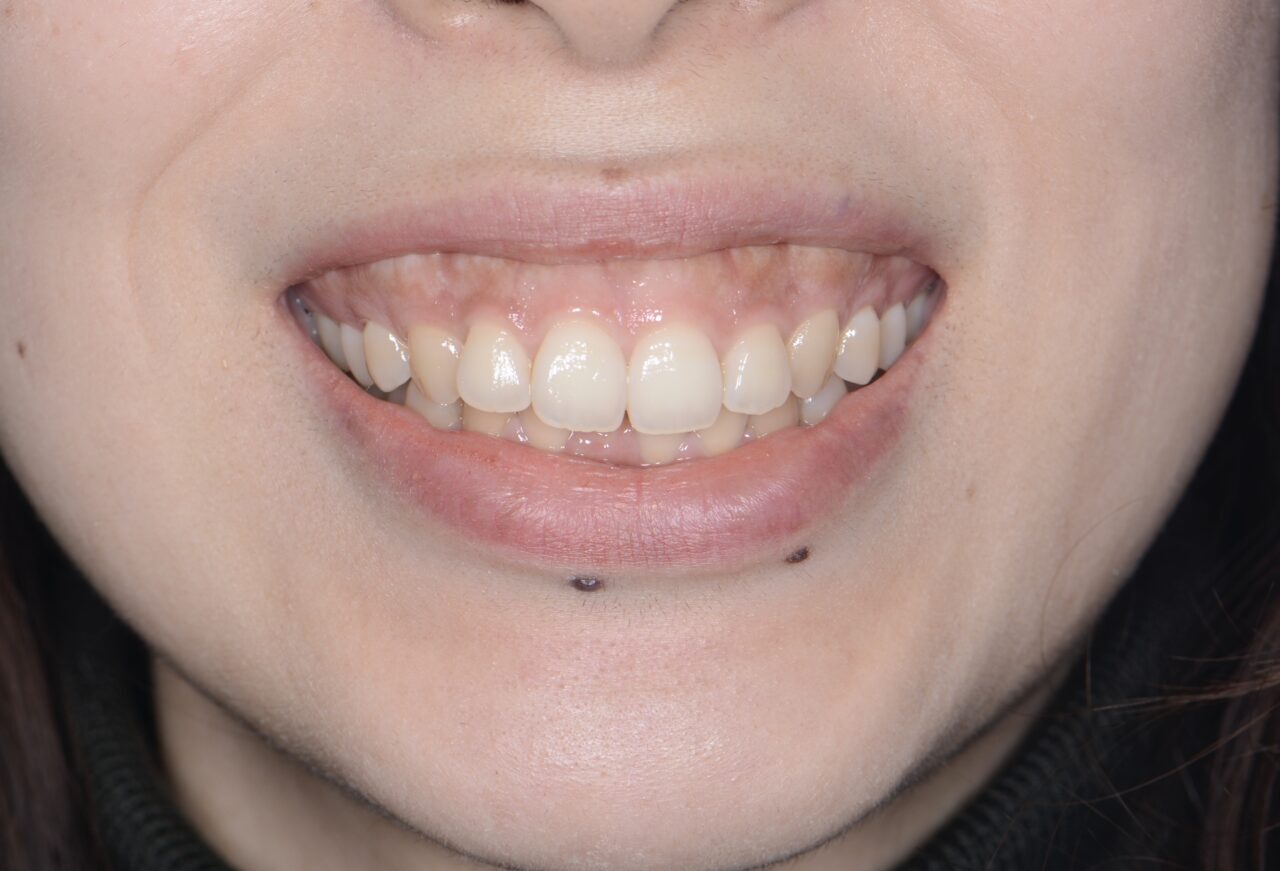 - このケースも矯正から治療スタートします。強い歯列不正もガミースマイル治療時には必ず歯列不正を治してからガミースマイル治療に移行します。