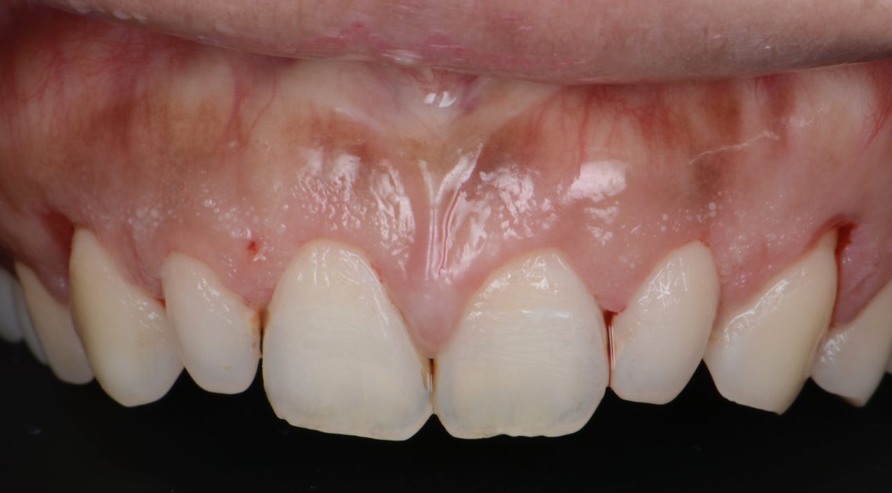 口唇を引き上げる筋肉が発達しすぎている為、スマイル時に歯茎が沢山露出してしまうガミースマイルです。