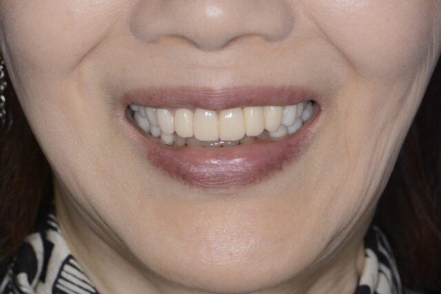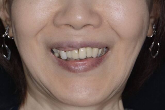 | 備考 | 【リスク・副作用】 他院治療により痛めつけられた歯が弱っている。 インプラントの位置が3次元的にめちゃくちゃである。 元々食い縛りが酷いため歯がダメにならないように夜間マウスピースにより歯軋り食い縛りによる補綴物の破壊を予防。 |