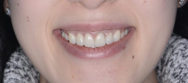 審美クラウンレングスニング(コラム参照https://www.lilianadentalclinic.com/2021/04/16/852/)を行い ラミネートベニヤ治療を行なった。