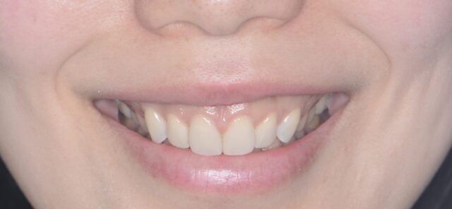 【来院理由】他院にて行ったインビザライン処置の結果、ガミースマイルも歯並びも改善せず。なんとかして欲しい。