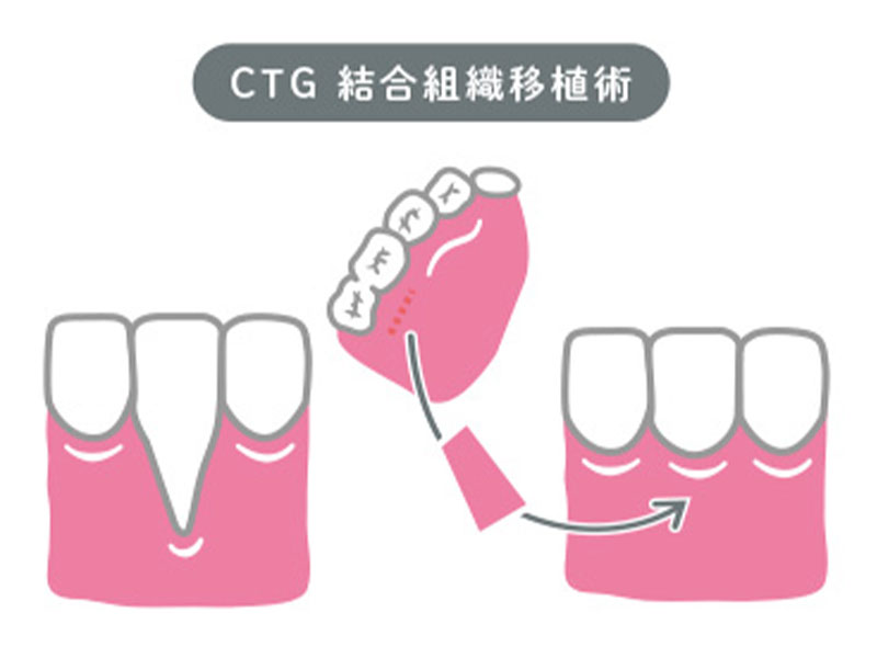 CTGとは、インプラント治療を行う上で歯茎(歯肉)が足りない人に対して行う治療の一つです。